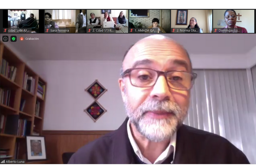 El día 7 participó en la Asamblea el P. Alberto Luna, jesuita paraguayo que hace cuatro años vive en Chile. Su compartir, sencillo y profundo, puso nombre a lo que pueden ser las expectativas, prejuicios, deseos y dudas de las hermanas. Aunque su experiencia está inserta en la Compañía de Jesús, sus palabras bien podrían encajar en nuestra Compañía. Si la provincia nace como peregrina, habló de un peregrinar que no es solo geográfico, sino de transición de paradigmas, de modelos que han marcado las historias y que están llamados a ser reformulados a la luz del seguimiento de Jesús y de lo más genuino de nuestro ser teresianas. Su visión invitaba a ponerse en el camino de igual a igual, donde el intercambio, la valoración y la interconexión son cada vez más necesarias. Al hablar de dos grupos de mujeres consagradas que se encuentran, teniendo presentes a María e Isabel, habló de mujeres que van camino de dar a luz, y que saben, que sus hijos, les llevarán a transitar senderos desconocidos. María e Isabel pudieron compartir con un mismo lenguaje de fe lo que les estaba sucediendo, porque ambas vivían lo mismo; de aquí surgió la invitación hecha a las hermanas, a salir de casa, a ponerse en camino, a correr riesgos y compartir, conversar, rezar… María e Isabel, también representan el encuentro generacional que hace saltar la vida de gozo.