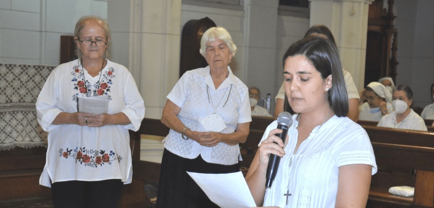 Luego del Acto Penitencial, se escucharon las lecturas seleccionadas por Guadalupe, la primera del Cantar de los Cantares, el Salmo 17 cantado y por último el Coloquio de Amor de Santa Teresa. El Padre proclamó el evangelio de San Juan que relata el encuentro de María Magdalena con el resucitado. Seguidamente la Hna. Ángeles Muñiz, Coordinadora provincial, le preguntó a María Guadalupe; “Después de estos años de haber compartido el seguimiento de Jesús en la Compañía ¿Qué pides en este momento de tu vida?” Guada con mucha emoción respondió: “Pido seguir a Jesús en la Compañía de Santa Teresa de Jesús, entregando todo lo que soy, quiero participar de su misión evangelizadora viviendo en comunidad su experiencia de obediencia, pobreza y castidad para siempre”.