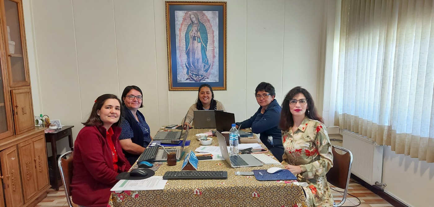 El martes 25 y miércoles 26 de octubre el Equipo de Comunicación Provincial tuvo su primer encuentro presencial. Las hermanas Ma. Luisa Caballero, Ma. Isabel Arrieta, Marcia Torrealba y Guadalupe Galeano junto con Fernanda Mira se dieron cita en Santiago de Chile para seguir soñando, ahora cara a cara como hacer vida la misión de evangelizar por medio de la comunicación.