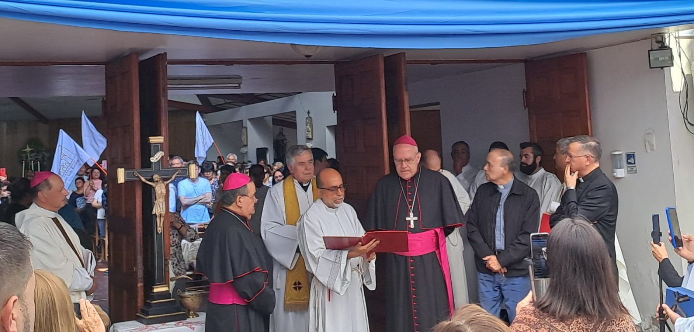 Una vez finalizada la ceremonia, inició la Eucaristía, donde en la homilía Mons. Larrondo se dirigió a todo el pueblo reunido, y expresó nuevamente el deseo de caminar juntos, en sinodalidad y estar en medio de todos y todas como servidor.