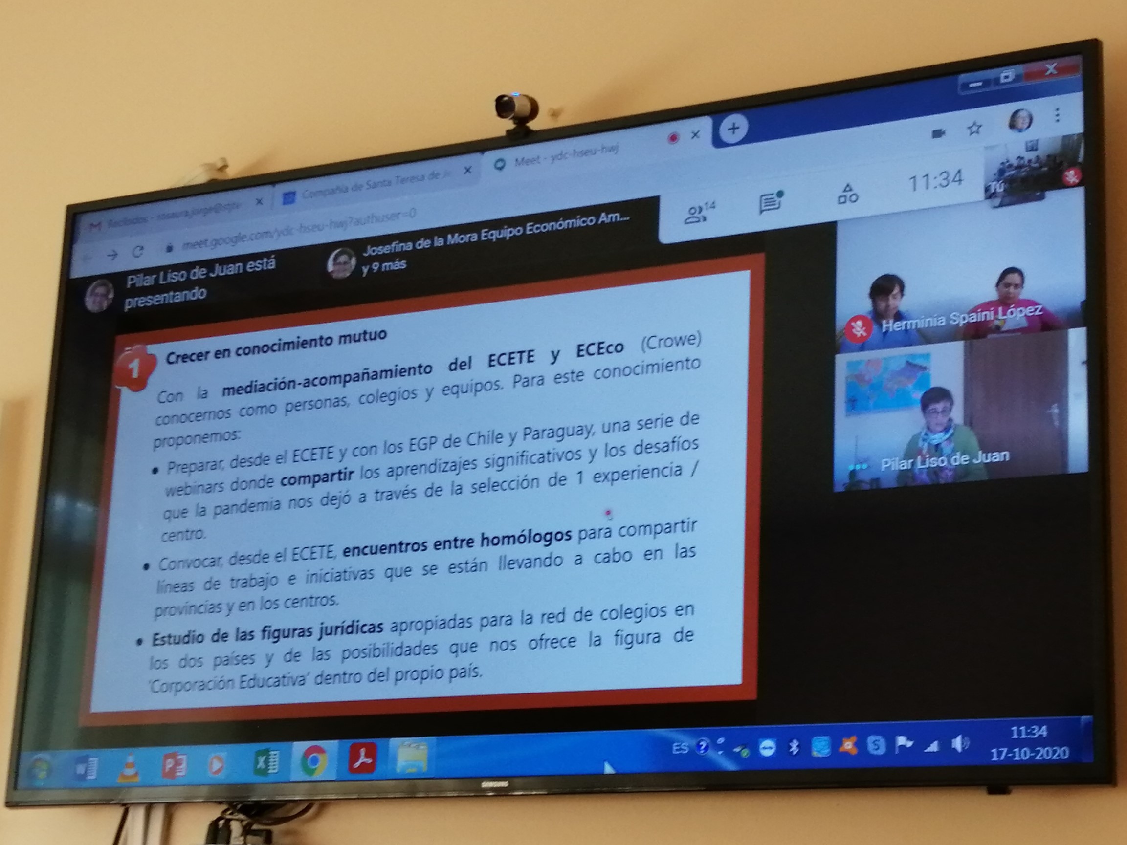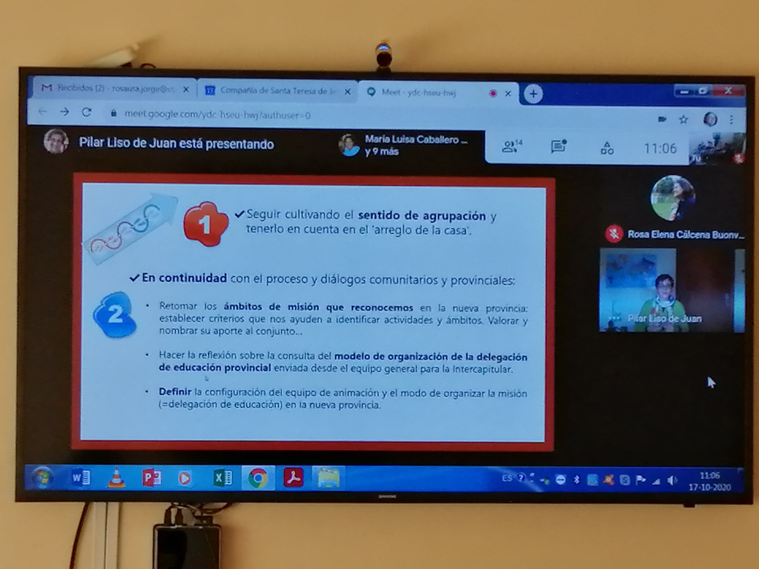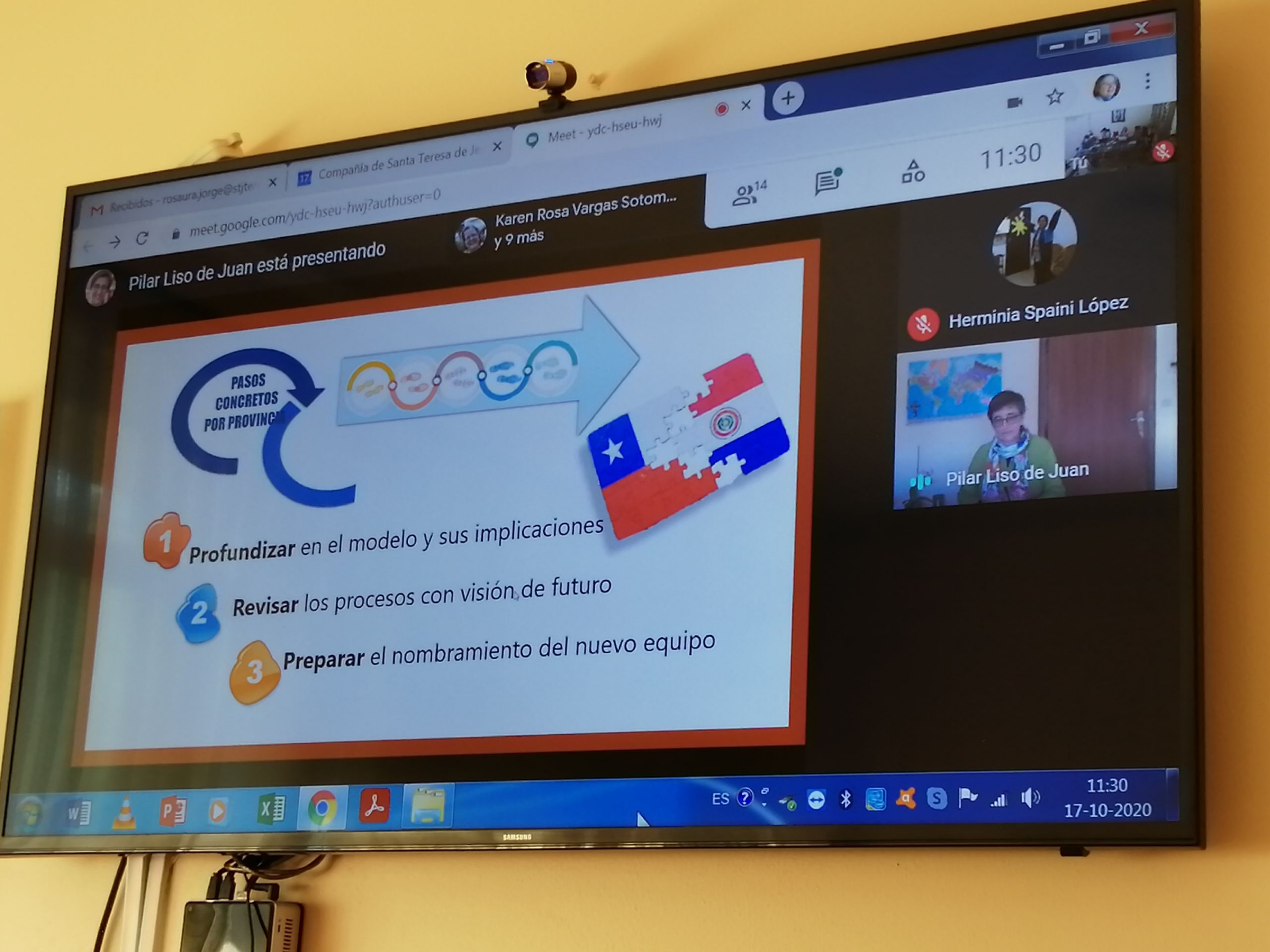 Siguiendo con el proceso de Reorganización de las Provincias de Chile y Paraguay, el sábado 17 de octubre durante toda la mañana, se reunieron el Equipo de Gobierno Ampliado de ambos países, conformado por el Gobierno Provincial, la Delegada de Formación, la Secretaria Provincial y las coordinadoras de las comunidades, así mismo estaban las hermanas Ma. Rosa Castellanos y Pilar Liso, del Gobierno Genera. En un primer momento cada coordinadora provincial presentó la síntesis del trabajo realizado por las comunidades en relación a lo que deseamos vivir cuando se conforme la nueva Provincia, en diferentes ámbitos de la vida: vida comunitaria, pastoral juvenil vocacional, formación, misión, gobierno y economía.